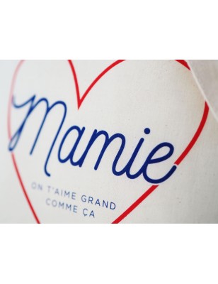 Récompensez votre merveilleuse mamie avec ce joli sac mamie je/on t'aime grand comme ça. Avec sa jolie typographie, elle sera ravie de se promener, son petit sac au bras, accueillant tous ses objets du quotidien. La personnalisation avec le(s) prénom(s) de ses petits enfants sur le coté du coeur font de ce tote bag pour grand mère, le sac fourre-tout par excellence ! Pratique, élégant, votre mamie ne pourra plus s'en passer et elle pensera à vous à chaque fois que ses amies la complimenteront